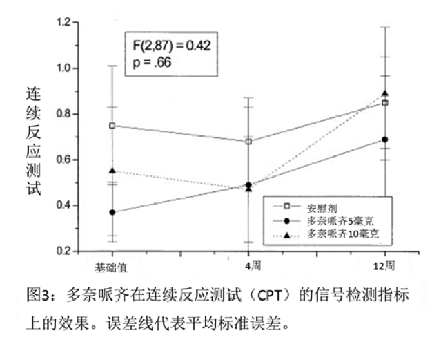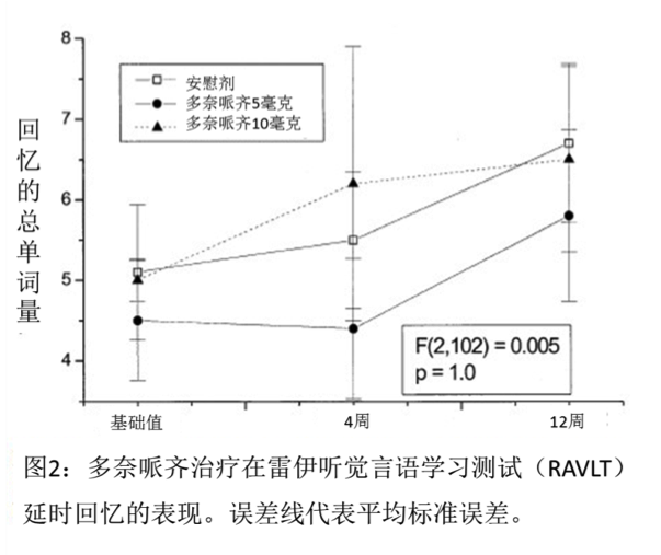 結(jié)果:與安慰劑相比,無論是5毫克還是10毫克劑量的多奈哌齊都未能對認(rèn)知產(chǎn)生任何程度上的顯著改善。